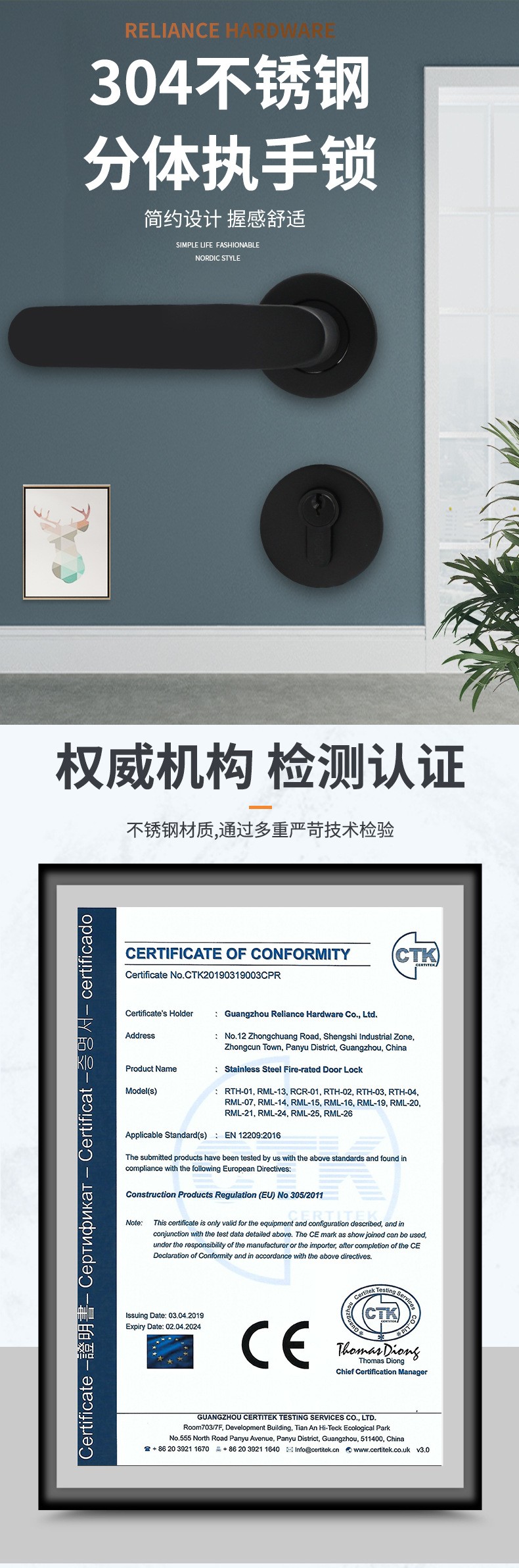 RST-18 不锈钢304仿精铸执手分体机械门锁