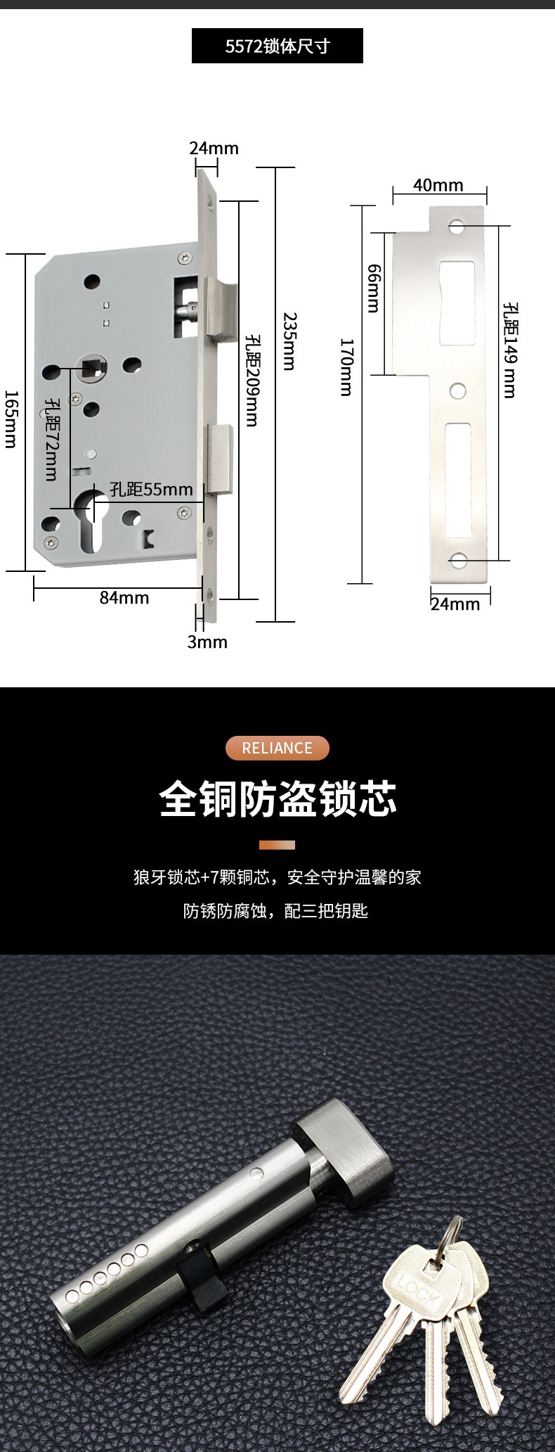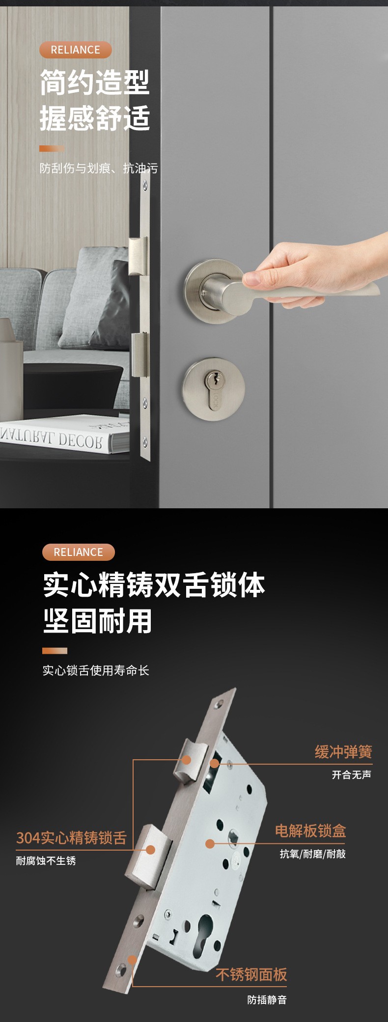 RST-28 不锈钢304简约镍拉丝分体锁
