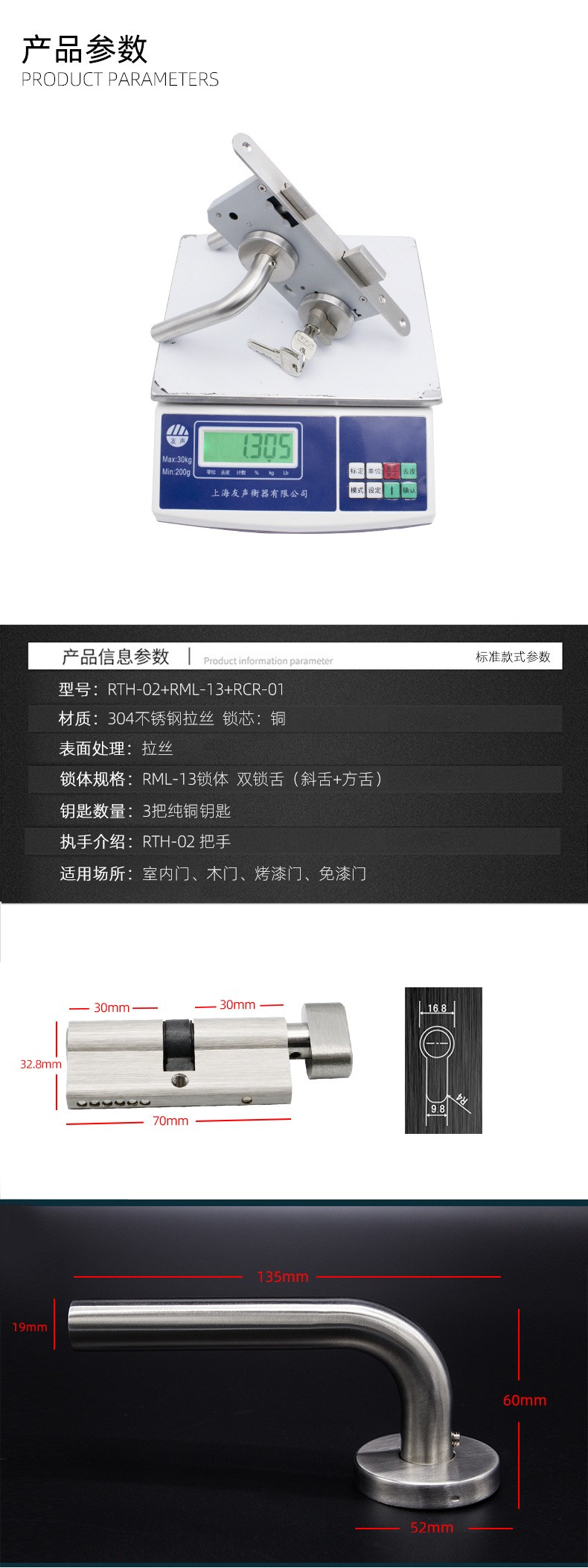 RTH-02 不锈钢大葫芦欧标分体把手防火锁