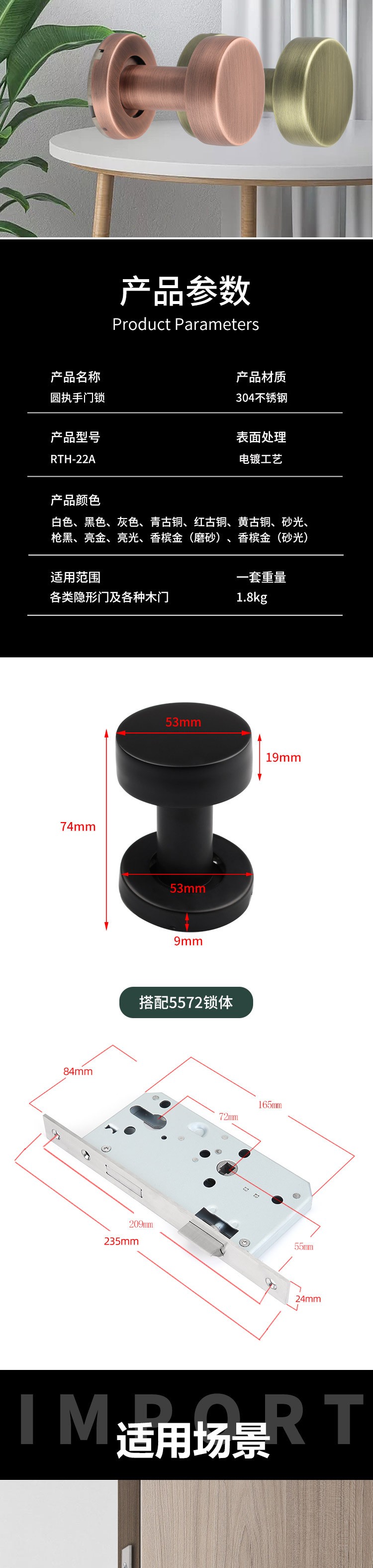 RTH-22A 不锈钢分体球形把手带钥匙门锁