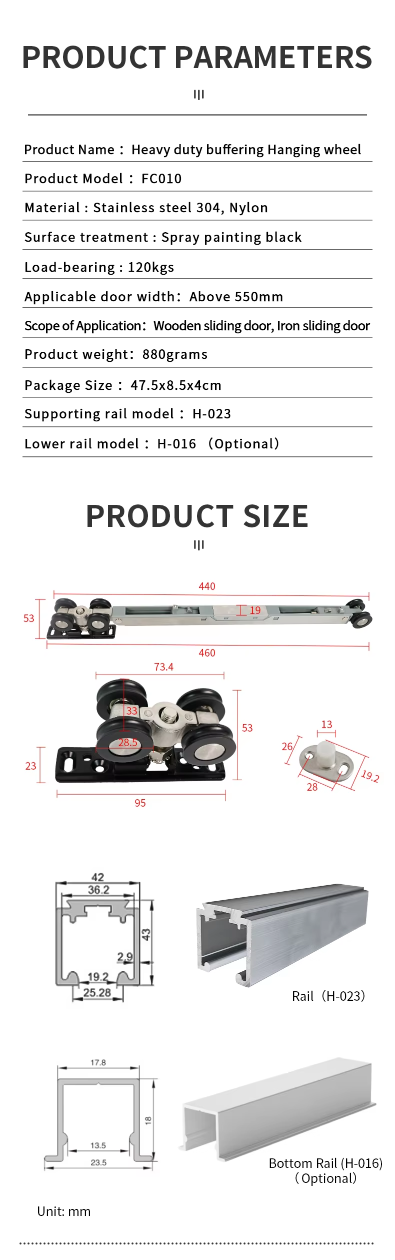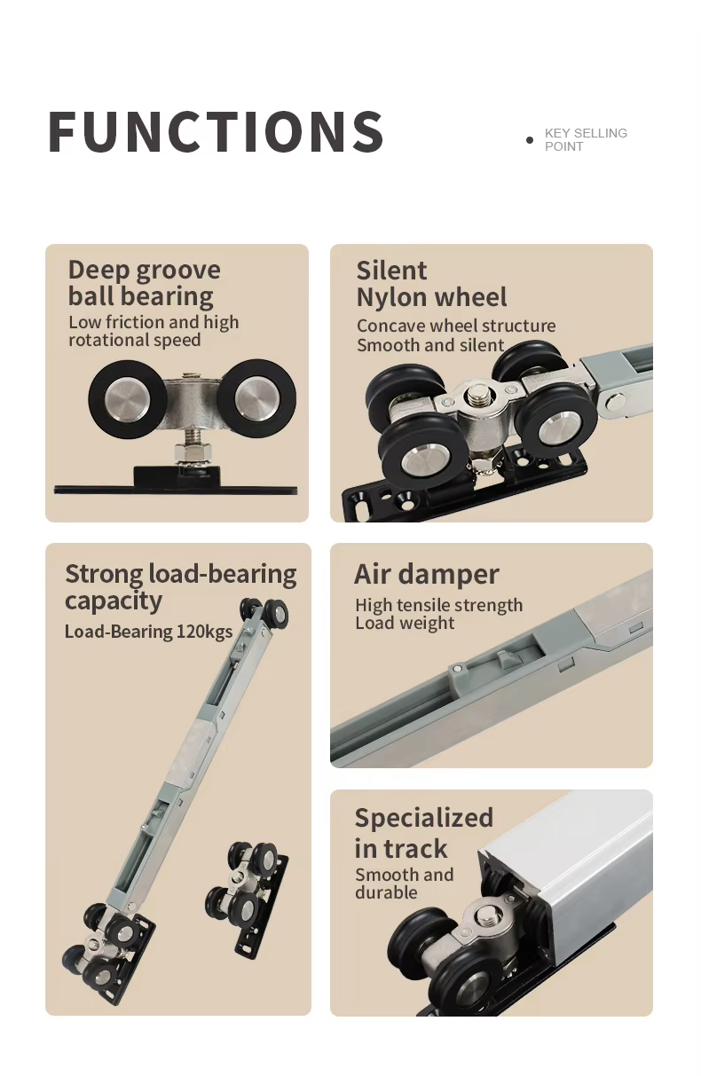 FC010 Heavy Duty Bearing 120kg Double Way Buffer Damper Pulley Sliding Door Rollers